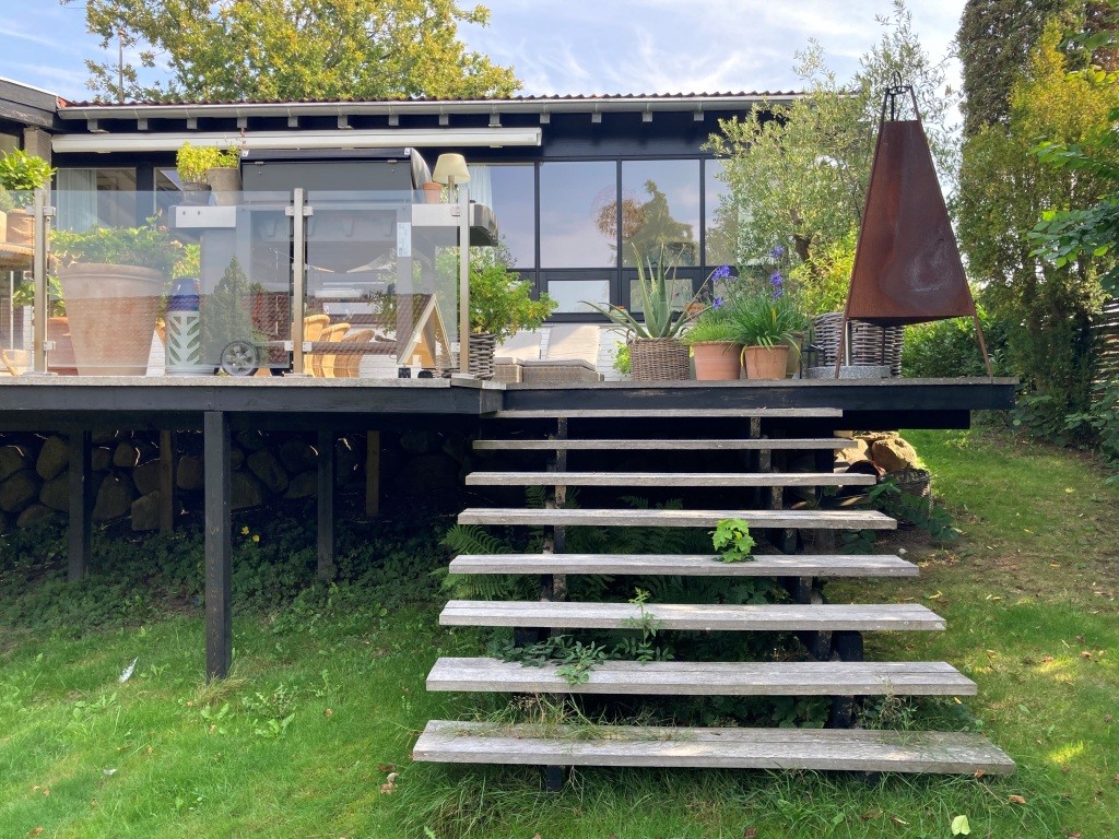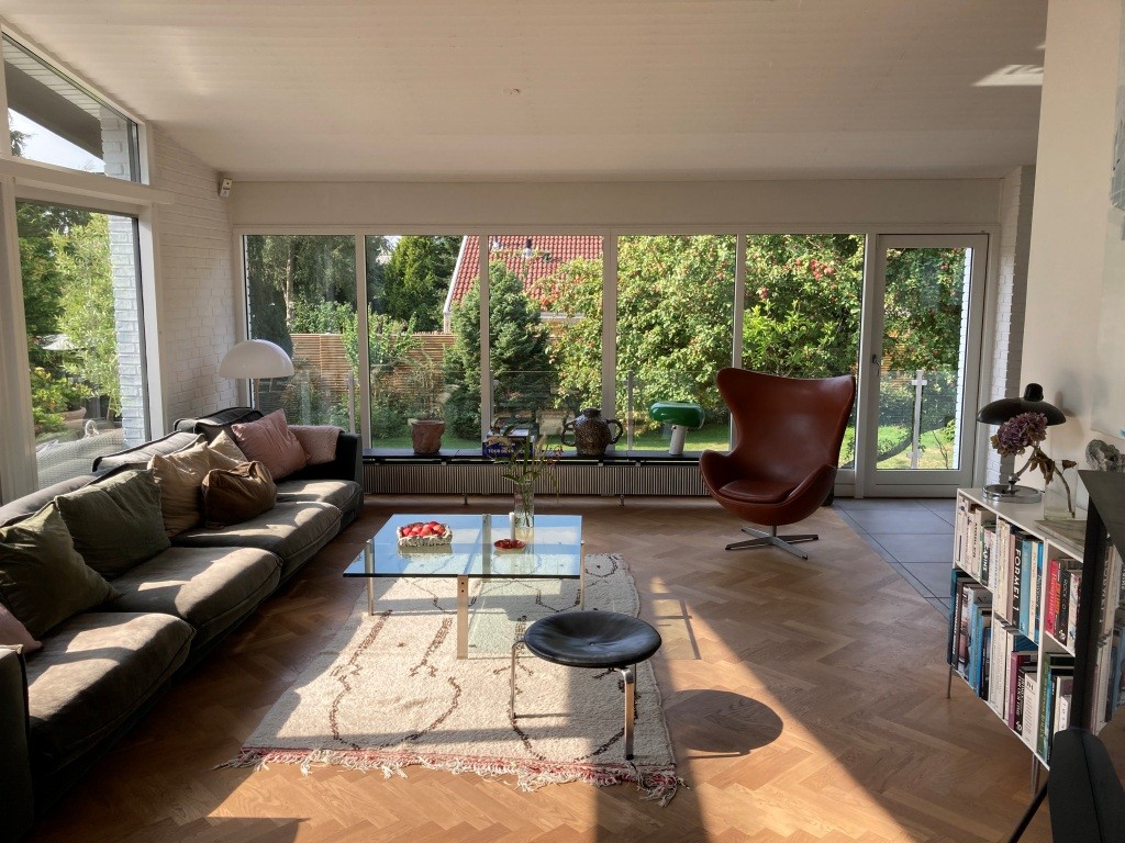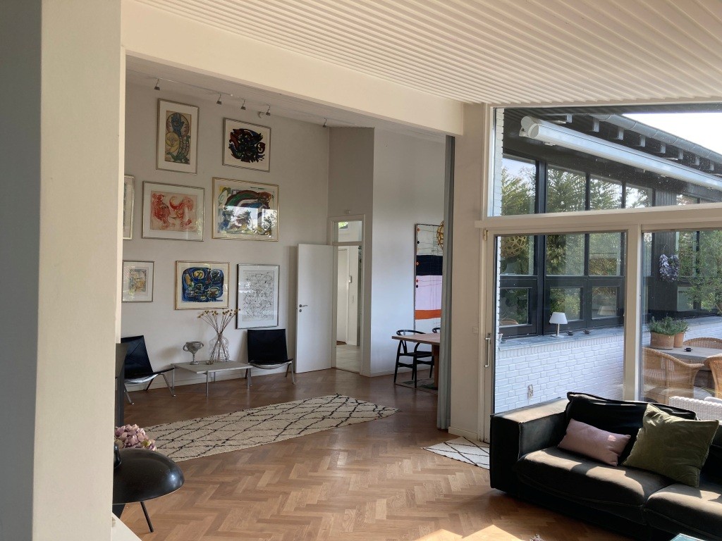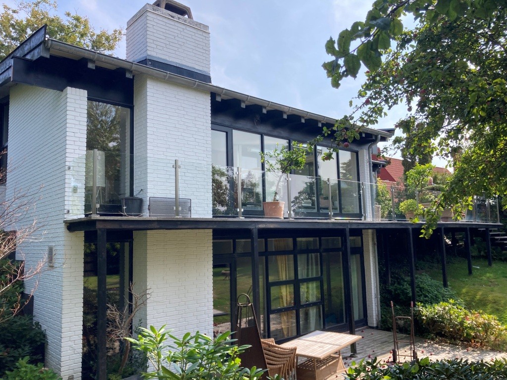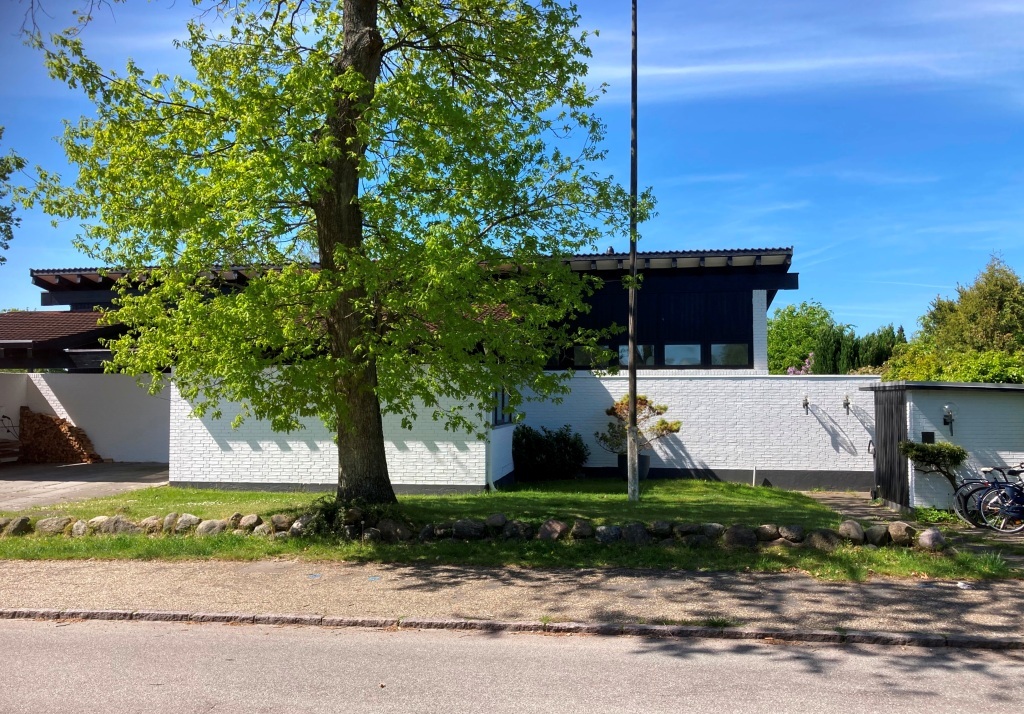 Huset er oprindeligt tegnet af arkitekt Jan Arnt som præstebolig, men blev senere solgt og efterfølgende opdateret med stor hensyntagen og respekt for den oprindelige arkitektur, indretning og proportionering. De væsentligste ændringer var nyt køkken og nyt sanitet samt ændring af kældertrappen, og i haven blev den hævede fliseterrasse ændret til en terrasse af træ.